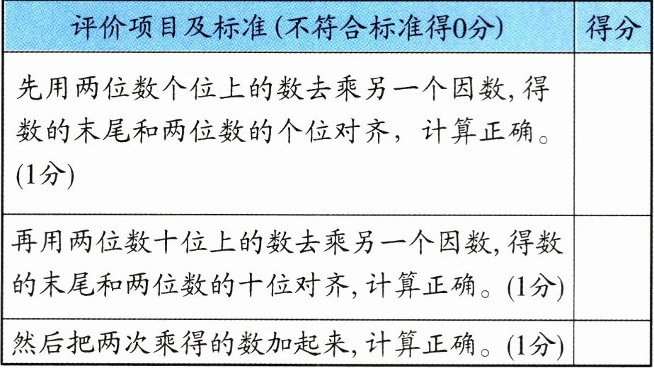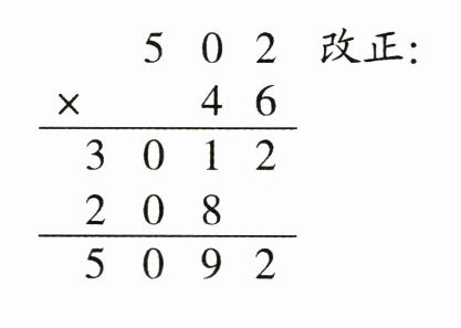 提示:第二步错在两位数的十位上的数去乘另一个因数时,没有乘0,而是直接乘百位上的数;第二步计算得数错误,所以两次乘得的数相加结果也是错误的。