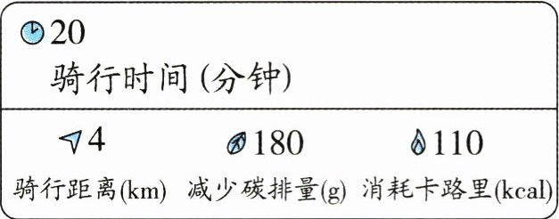 提示:根据题意可知,每骑行4千米减少碳排量180克,因此用小华一个月骑行的路程除以4后,再乘180即可解答。