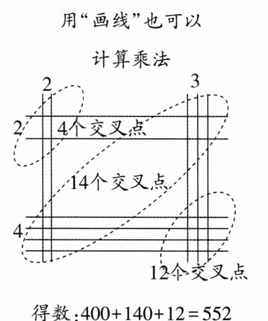 5. 算理理解 计算乘法的方法还有很多种,下面用2种方法计算了24×23,请用下面“画线”的方法计算132×23。