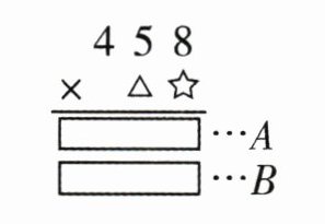8. 如图是笔算三位数乘两位数的计算过程,第一步得数是A,第二步得数是B。