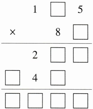 4的个位是0,第一个因数只能是105;因为105× =二百多,所以第二个因数个位只能是2,这个算式是105×82,据此将其他空填出即可。