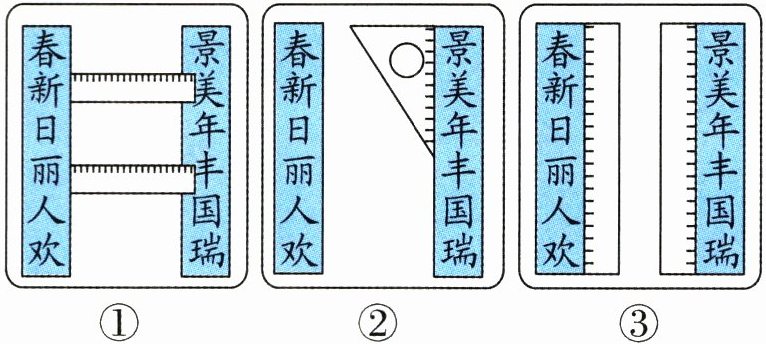 (3)对联,又称对偶、楹联等,是中国传统文化瑰宝。欢欢想检查对联的上联和下联贴得是否平行,可以选择方法(