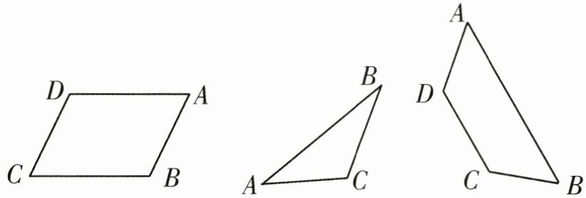提示:如图①,如果以BC为平行对边中的一条边,那么点D的位置有5种;如图②,如果以AB为平行对边中的一条边,那么点D的位置有3种。一共有8种。