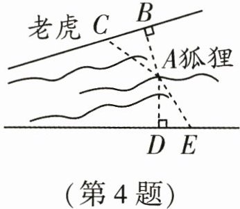 提示:狐狸既要游上岸又要远离老虎,应选在老虎的对岸上岸,且到岸边距离最近,路线AD符合要求。