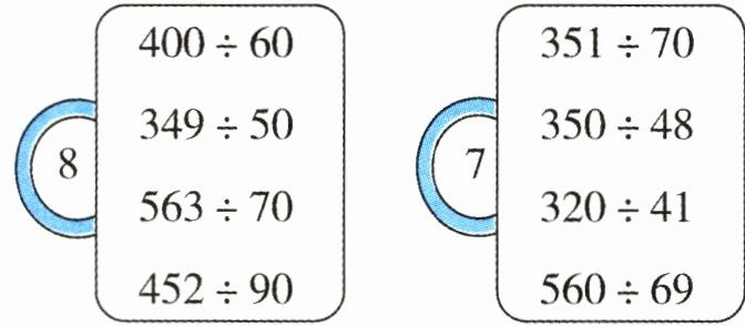 3. 估一估,哪个算式的商最接近左面的数?把它圈出来。