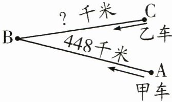 5. 甲车每小时行驶56千米,乙车每小时行驶64千米,甲车从A地行驶到B地共行驶了448千米。乙车从C地到B地用的时间比甲车少2小时。C地离B地有多远?