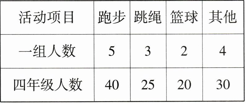 3. 四年级同学最喜欢的大课间活动统计表如下。
