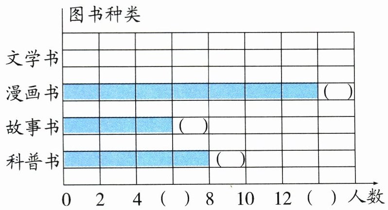 (3)最喜欢故事书的比最喜欢漫画书的少( )人。