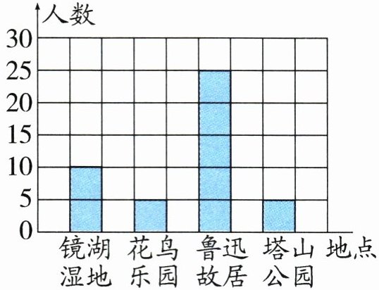 1. 四(3)班要投票确定假日游玩地点(每人只投一票)。除了请假的小明没有参加外,其他同学投票结果如下: