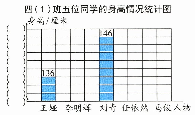 5. 下图是四(1)班五位同学的身高情况统计图,请把统计图填写完整。(5人身高都不同,且都是整厘米数)