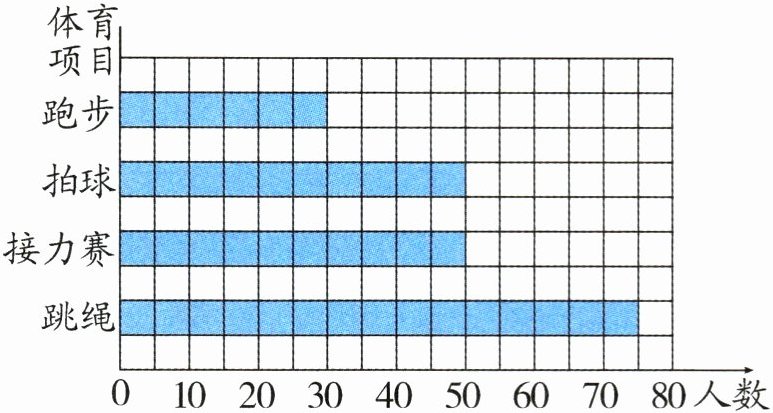 1. 如图是四年级同学喜爱的体育项目(每人只选一项)统计图。