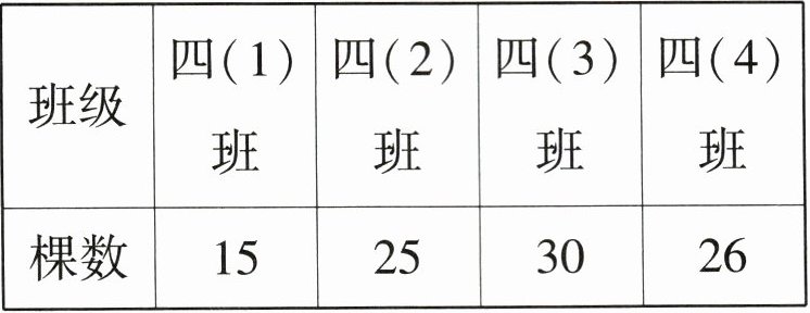 |班级|四(1)班|四(2)班|四(3)班|四(4)班|