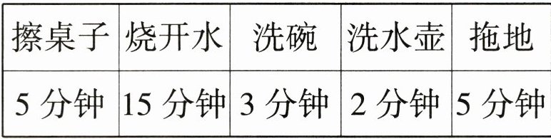 洗水壶2分钟$\rightarrow$烧开水15分钟