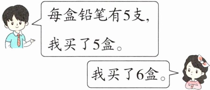 5×6+3=33(支)答:她一共买了33支笔。