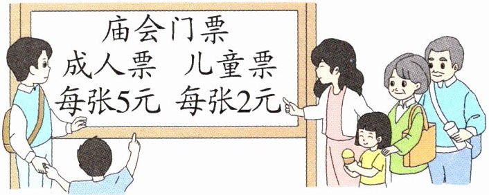 2. 小红一家去逛庙会,他们买门票一共需要花多少元?
