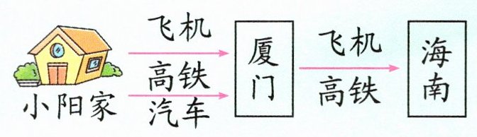 4.(选做题)小阳一家暑假去旅游,他们决定先去厦门,再去海南,下面是可供他们选择的交通方式。他们一共有(