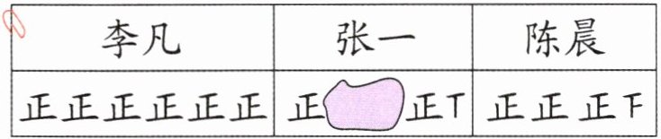 4. 新情境 图表信息 二年级竞选优秀学生代表,用画“正”字的方法记录票数,一笔代表1票,每人都投了1票。