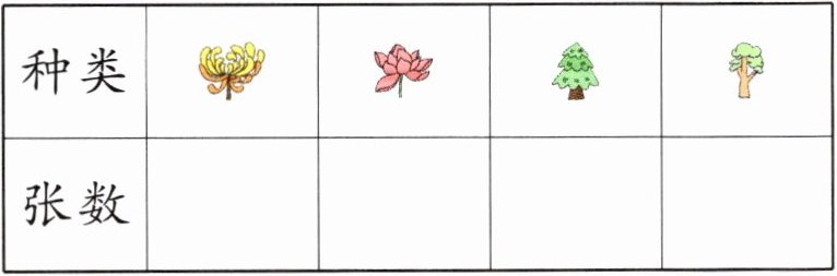 4 5 3 3 3 2 5 5 种类 花 树 张数 9 6 (合理即可)