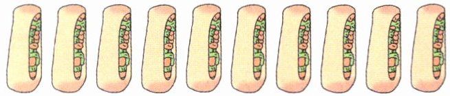 1. 小兰家做了 10 个驴肉火烧,每盘装 5 个驴肉火烧,可以装(