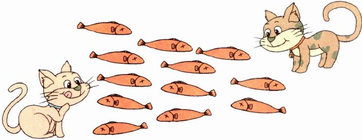 (2) 如果每只小猫分得同样多的鱼,每只分(