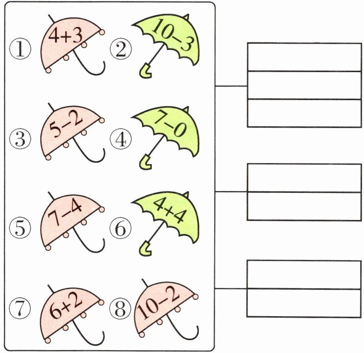 4. 把下面的雨伞分一分类。(填序号)