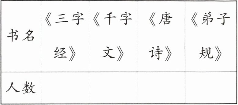 )的小朋友同样多。(2) 读《千字文》和《唐诗》的一共有多少人?