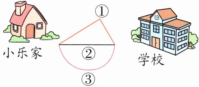 )厘米。(2)画一条线段,与路线②的长度相同。