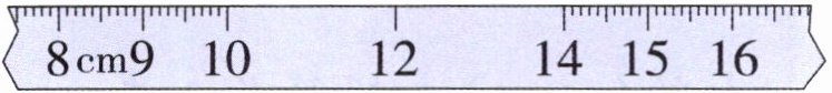 提示:两个刻度的差就是可以测量的物体的长度,可以测量的长度如下:9-8=1(厘米),10-8=2(厘米),12-9=3(厘米),12-8=4(厘米),14-9=5(厘米),14-8=6(厘米),15-8=7(厘米),16-8=8(厘米)。