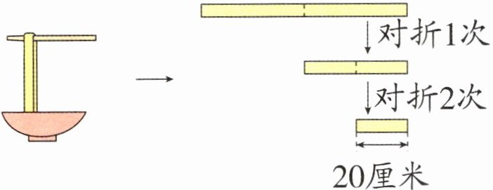 4. 新情境 人文历史 遼(biáng)遼(biáng)面是陕西关中地区一种知名传统面食,按如下方式对折后的长度是 20 厘米,则原来一根面条的长度大约是(