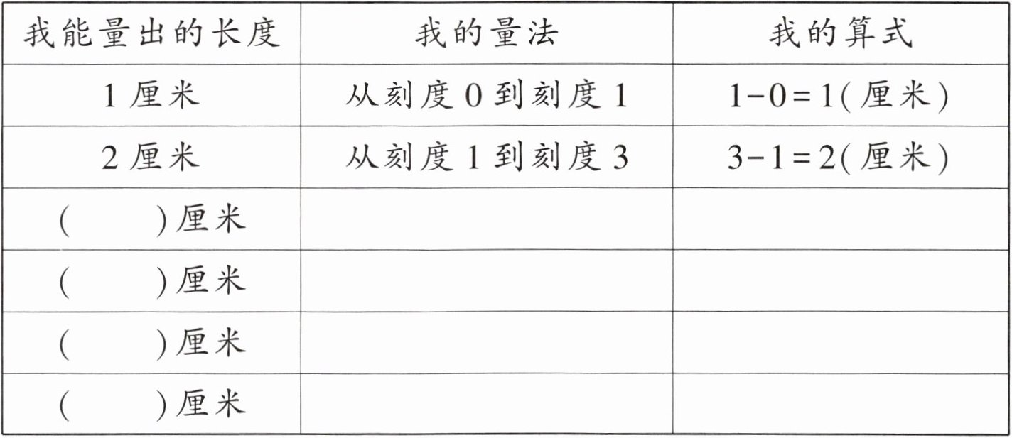 3厘米 从刻度0到刻度3 3 - 0 = 3(厘米)