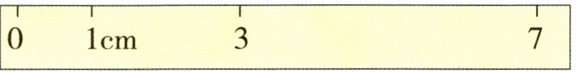 7厘米 从刻度0到刻度7 7 - 0 = 7(厘米)