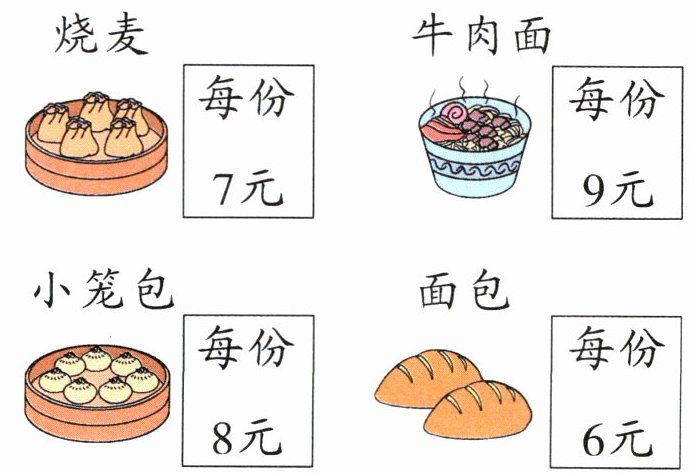 )份。(2) 亮亮:我给爷爷、奶奶、爸爸和妈妈各买了一份牛肉面。