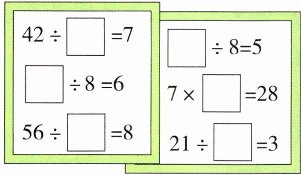 $35÷5$ $8×2$ $30÷6$ $48÷8$