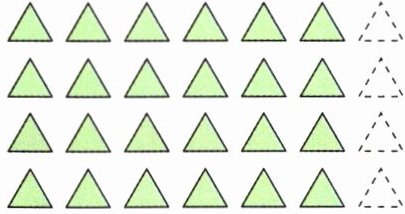 6 提示:如题图所示,4×7表示竖着看,每列有4个,有7列,再减去4表示减去1列,也就是每列有4个,有6列,所以4×7 - 4=4×6。