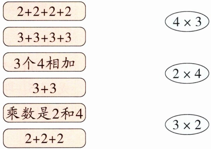 1. 下面不能用乘法算式表示“一共有多少”的是(
