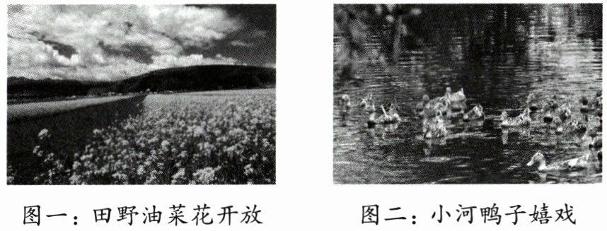 2. 语文要素 下面是小恩同学拍摄的家乡风景照片,从图一或图二中任选一幅,用上动态或静态描写,把照片上的画面写具体。(3分)