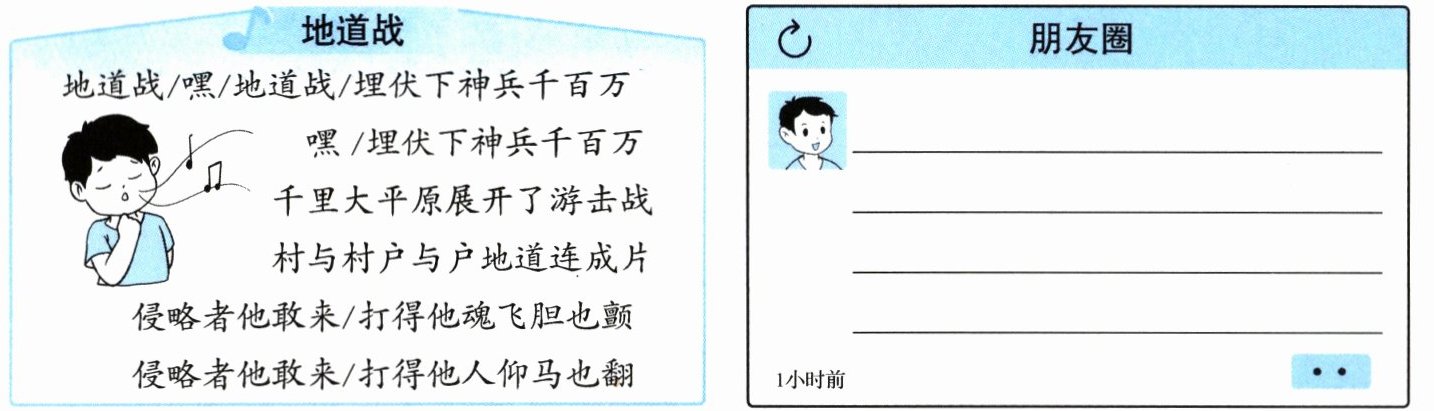 5. 开放探究 结合下面的歌词和课文内容,发朋友圈夸夸发明地道战的冀中人民吧。(2 分)
