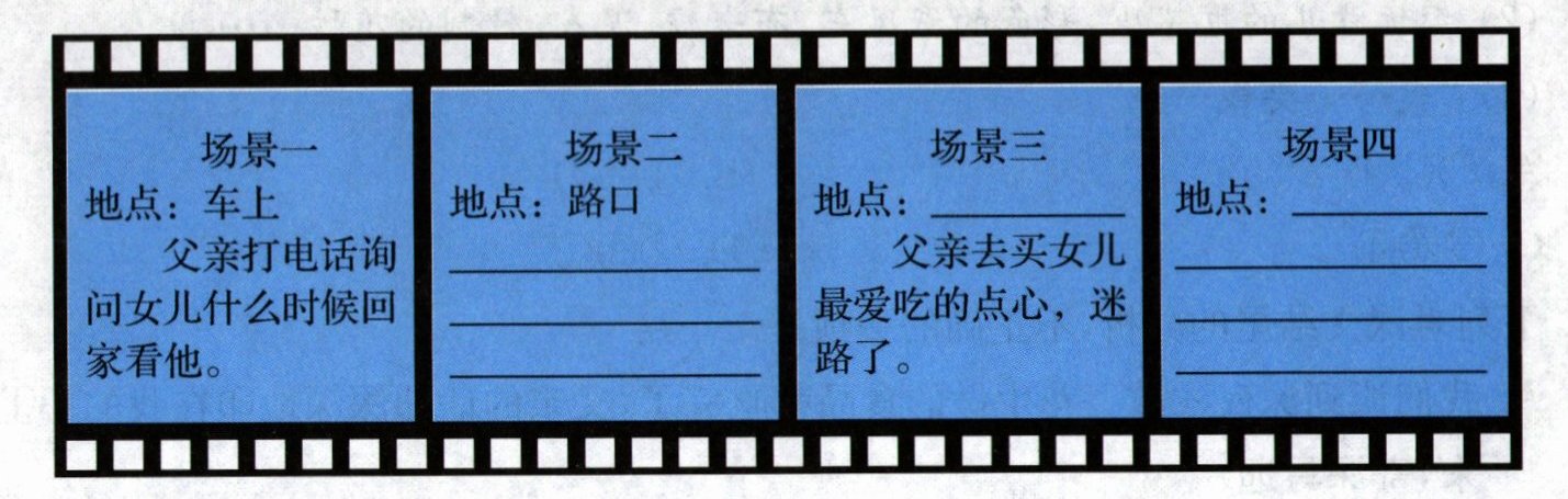 1. 短文回忆了女儿与父亲的四个场景,请你简要概括每个场景,完成回忆胶片。(4 分)
