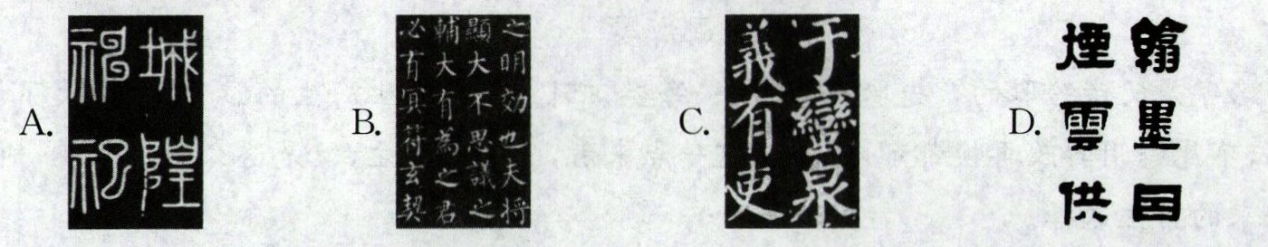 4. 柳公权是唐代著名的书法家。他的楷书用笔方圆并施,点画棱角分明,结构精妙,瘦硬挺拔,骨力遒劲。下列作品中,是他的楷书作品的一项是( )
