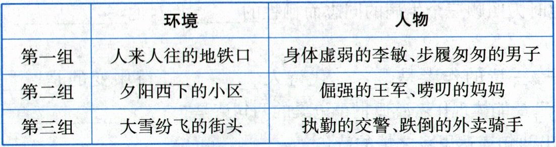 |第一组 人来人往的地铁口|身体虚弱的李敏、步履匆匆的男子|