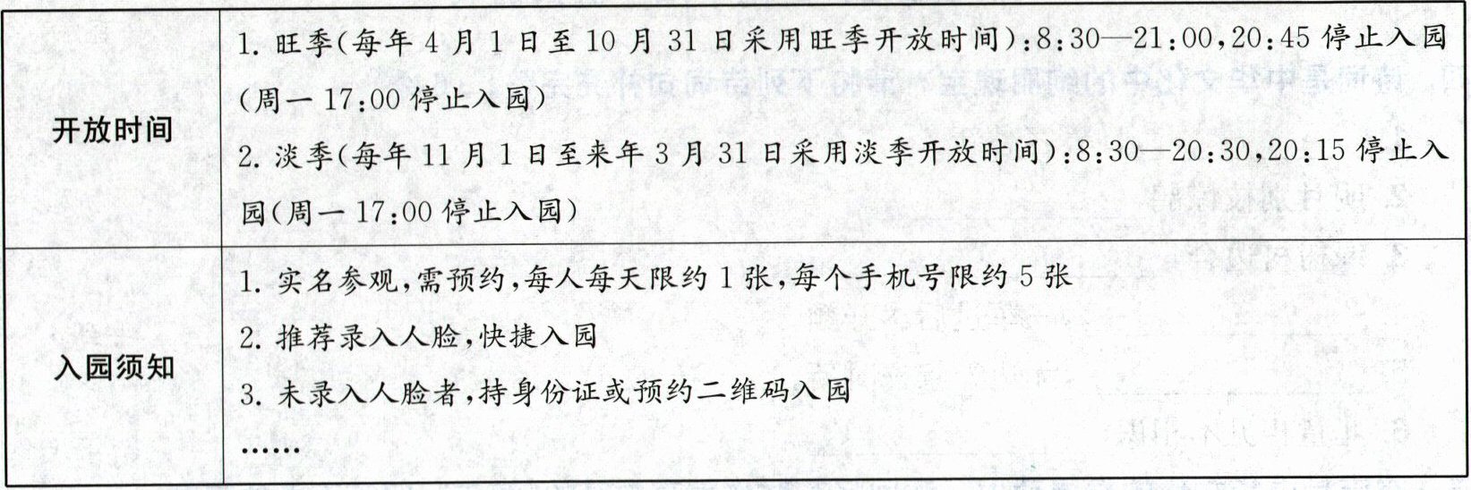 1.语文要素 为了确定大家的出行时间,需要重点阅读材料______;为了设计游览路线,需要重点阅读材料______。同学们打算从停车场出发,游览以下景点:鲁迅纪念馆、百草园、三味书屋、鲁迅笔下风情园、沈园,你规划的路线(尽量不走回头路)是:停车场→______→______→______→______→沈园。(3分)