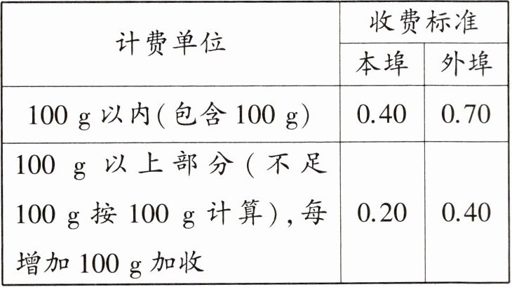 (1)小宁寄给本埠的同学一份165g的印刷品,应付邮费多少钱?