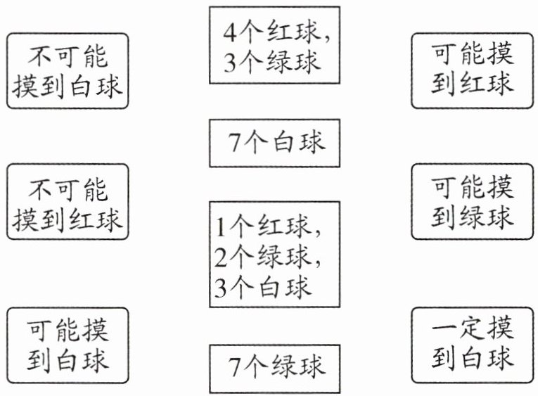 5. 从盒子中摸出一个球,结果会是什么?连一连。