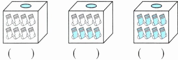 3. 闭着眼睛在下面每个盒子里面摸一只袜子,在一定摸到“”的下面画“√”,在不可能摸到“”的下面画“×”,在可能摸到“”的下面画“○”。