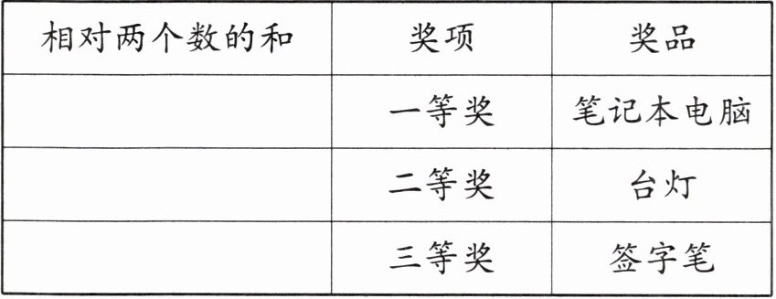 (2)根据转盘上相对两个数和的不同及“获奖规则”,请你为商场设计奖项,将上面表格填写完整。
