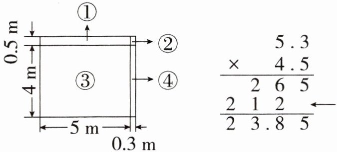 2. 新趋势 算理理解 小西家的书房长$5.3m$,宽$4.5m$(如图)。小西用竖式计算书房的面积,竖式中箭头所指的这一步计算的是(