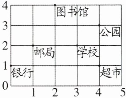 (3)少年宫在$(5,1)$的位置,请在图中标出少年宫的位置。