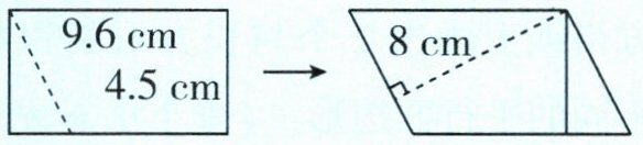 7. (选做题)小阳把一个长 $9.6cm$、宽 $4.5cm$ 的长方形进行剪切后拼成了一个平行四边形。求拼成的平行四边形的周长。