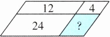 6. (名校期末真题)如图,一个平行四边形被两条直线分成 $4$ 个平行四边形,其中 $3$ 份的面积分别是 $12m^{2}$、$4m^{2}$、$24m^{2}$。图中涂色部分的面积是( )$m^{2}$。