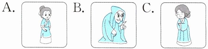 Snow White is a beautiful girl. Her skin is white and her mouth is red. She has long black hair and big brown eyes. She is kind and quiet. Many people like her. She has seven good friends. They are very short,and they are all friendly. They live in a small house in the forest(森林). One day,Snow White meets an old woman. She is short. She has a big nose and a big mouth. She has a long black cloak(斗篷). Who's she?